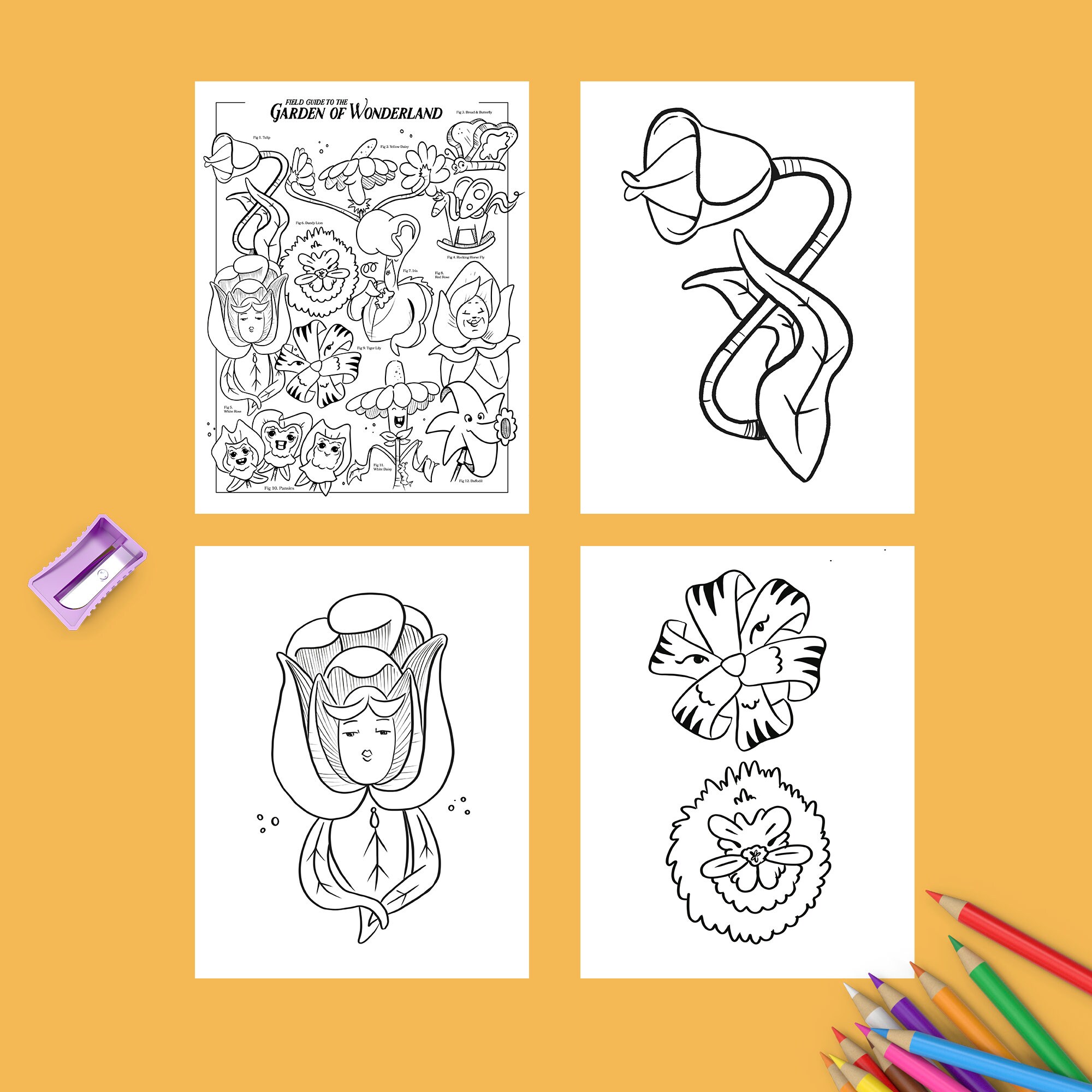 Flowers From Alice In Wonderland Coloring Pages Easy Etsy